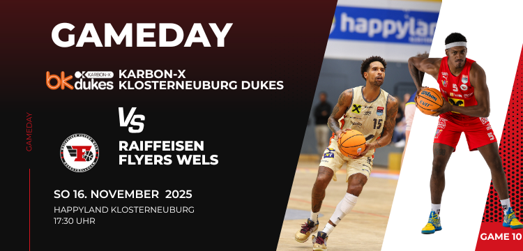 Am kommenden Wochenende wartet auf die Raiffeisen Flyers Wels eine der schwierigsten Aufgaben der Saison: Das Auswärtsspiel bei den Klosterneuburg Dukes. Die Niederösterreicher gelten nicht nur als klarer Favorit in dieser Begegnung, sondern auch als einer der heißesten Anwärter auf den Titel in der Win2Day Basketball Superliga. Mit fünf Siegen in Serie und einem beeindruckend...Read More