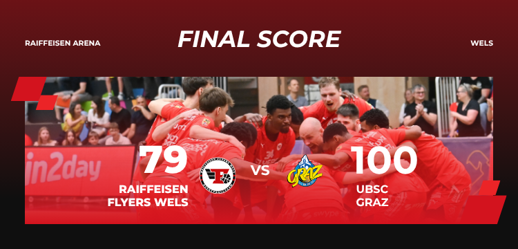 Die Raiffeisen Flyers Wels mussten im dritten Spiel der Serie gegen den UBSC Graz eine deutliche 79:100-Niederlage hinnehmen und stehen damit nun unter erheblichem Druck. Vor allem defensiv präsentierten sich die Flyers über weite Strecken zu anfällig und fanden kaum Mittel, um den offensiven Rhythmus der Grazer zu unterbrechen.