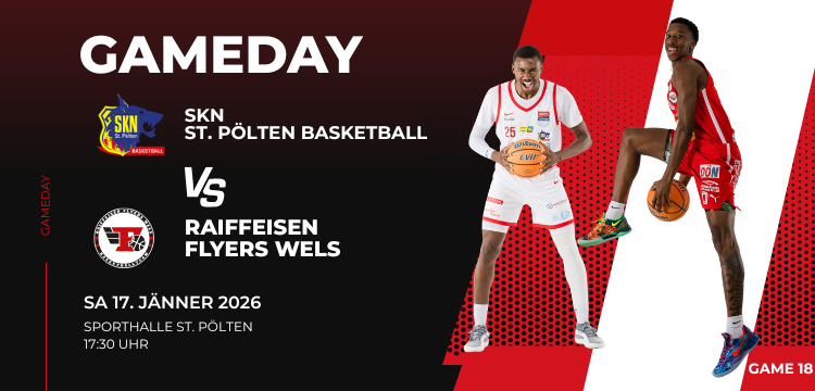 Am kommenden Samstag, den 17.01., wartet auf die Raiffeisen Flyers eine richtungsweisende Aufgabe in der win2day Basketball Superliga. Um 17:30 Uhr sind die Oberösterreicher auswärts beim SKN St. Pölten zu Gast. Mit einem Erfolg könnten die Flyers einen großen Schritt machen und die Teilnahme an den Top-6 der Liga fixieren – ein klares Ziel, das dem Spiel zusätzliche Brisanz verleiht.